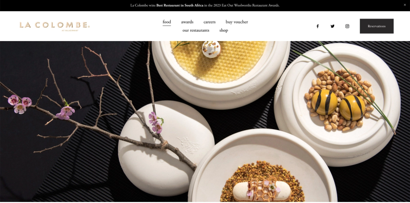 The first restaurant website on our list is La Colombe. The website sports a clean and ultra-sophisticated aesthetic. The menus are easily accessible from the home page, and the thoughtful layout of the site makes it a breeze to navigate.